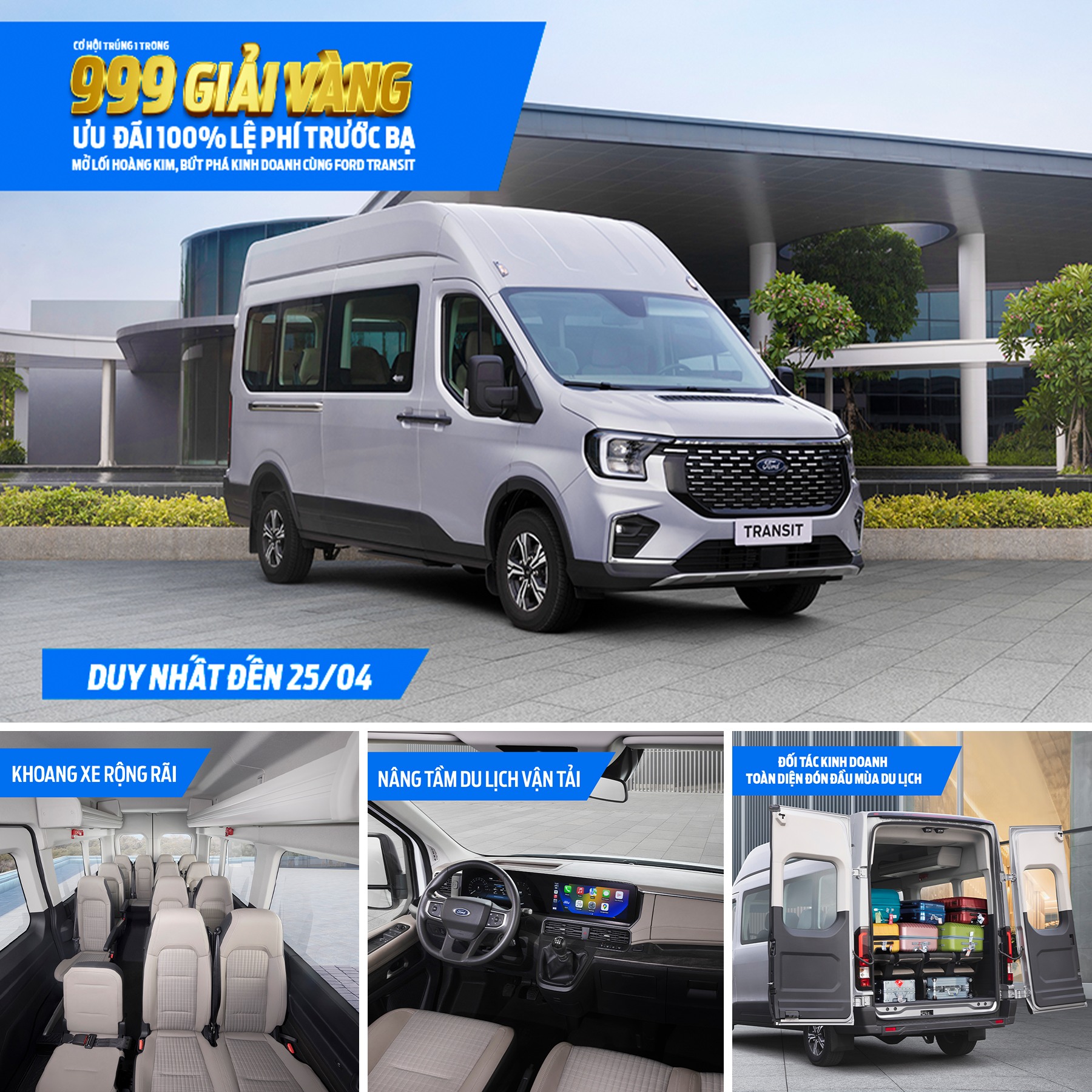 Khách hàng mua Ford Transit trong thời gian từ 10/03/2026 đến 25/04/2026 sẽ nhận được những ưu đãi đặc biệt: